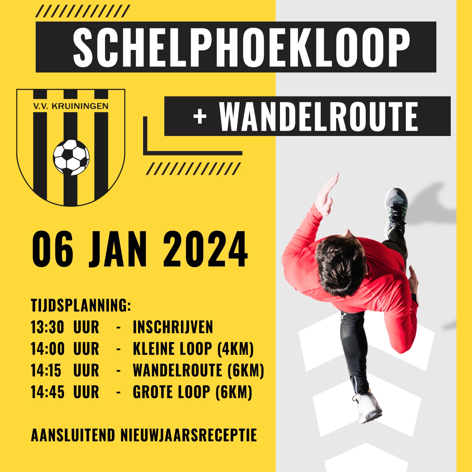 ๐ We organiseren de jaarlijkse 'Schelphoekloop' vanaf voetbalveld de Kruse Mat wederom op de eerste zaterdag van het jaar. Dit jaar hebben we naast de 4 en 6 kilometer afstanden, ook weer een wandelroute van 6 kilometer! De wandelroute zal in tegengestelde richting van de 6 kilometerloop worden afgelegd. Iedereen is van harte uitgenodigd om (gratis) deel te nemen!